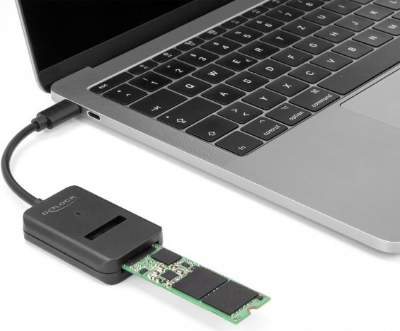 Dieser Konverter von Delock ermöglicht den Einbau einer M.2 PCIe NVMe SSD oder SATA M.2 SSD, er kann über USB an den PC oder Laptop angeschlossen werden.