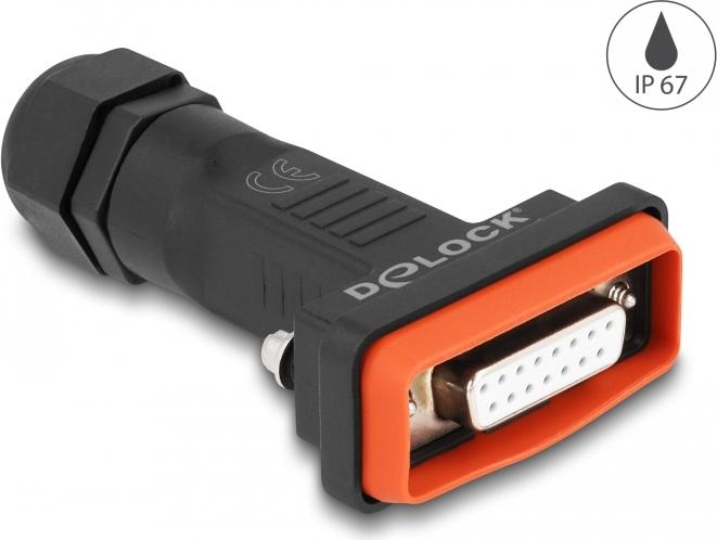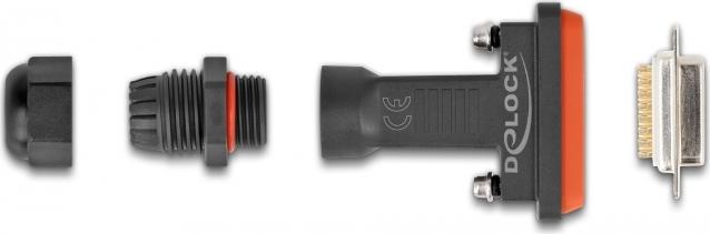 Diese D-Sub Buchse von Delock eignet sich für die Lötmontage und wird zur Kabelkonfektion verwendet. Das wasserdichte Gehäuse mit der Schutzklasse IP67 schützt die Kabeldrähte vor Feuchtigkeit und eignet sich ideal für den Einsatz im Schaltschrank.