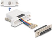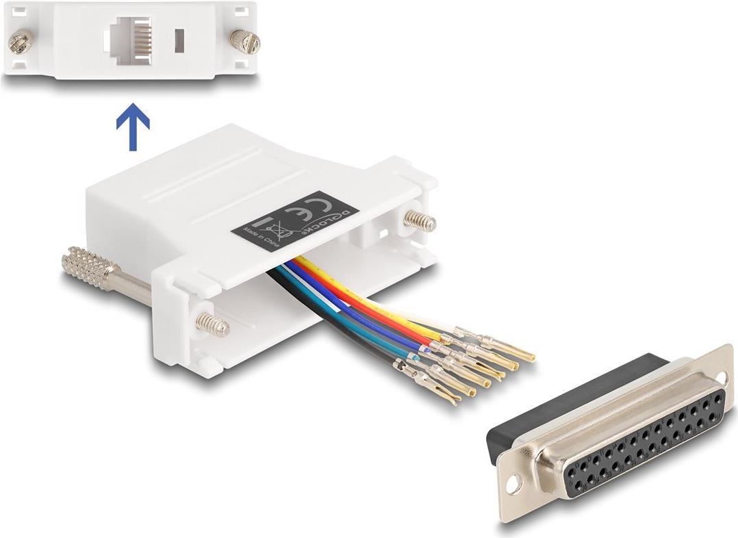 Das Delock Assembly Kit ist für eine robuste Konnektivität mit einer seriellen Adapterkonfiguration ausgelegt. Ausgestattet mit einem 25-poligen D-Sub (DB-25) auf der einen Seite und einer RJ-12 (6-poligen) Buchse auf der anderen Seite, gewährleistet dieses Kit Vielseitigkeit und Zuverlässigkeit für verschiedene Anwendungen. Die individuell zuweisbare serielle Schnittstelle ermöglicht personalisierte Konfigurationen und bietet dem Benutzer die für spezielle Anforderungen erforderliche Flexibilität.