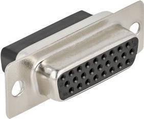 Diese D-Sub HD (High Density) Buchse von Delock eignet sich für die Kabelmontage. Auf der Rückseite befinden sich Durchgangslöcher zum Einsetzen von Crimpkontakten.