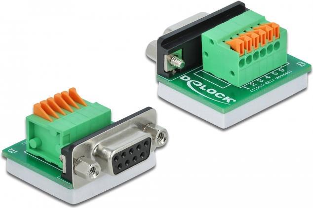 DeLOCK - Serieller Adapter - DB-9 (W) bis 6-poliger Anschlussblock - Daumenschrauben, Drucktaster (66557)