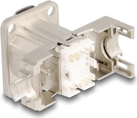 • Delock D-Typ RJ45 Einbaubuchse mit LSA Anschluss Cat.6A STP Metall (67064)