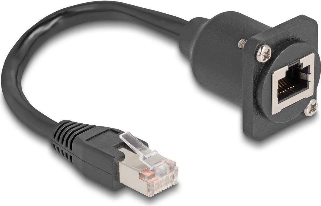 Delock D-Typ RJ45 Kabel Stecker zu Buchse Cat.5e schwarz 20 cm (87964)