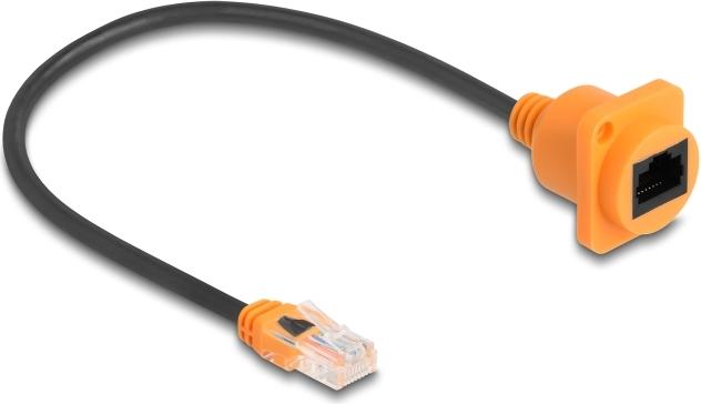Delock RJ45 D-Typ Netzwerkkabel Stecker zu Buchse Cat.5e UTP orange/schwarz 30 cm