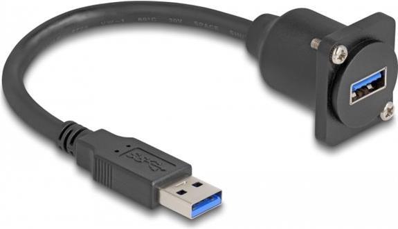 Dieses Kabel von Delock kann z.B. für den Einbau in ein Paneel oder Gehäuse mit D-Type Öffnung verwendet werden. Es kann auch für den Anschluss verschiedener USB Typ-A Geräte verwendet werden.