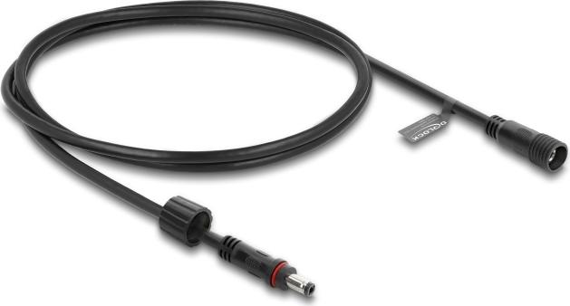 • Delock DC Verlängerungskabel 5,5 x 2,5 mm Stecker zu Buchse mit Schraubverschluss M12 x 1,75 mm Gewinde wasserfest 18 AWG, 1 m schwarz (67386)
