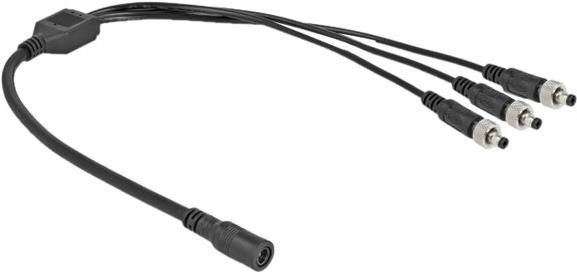 Dieses Verteilerkabel von Delock dient zum Anschluss von drei Geräten, welche Kleinspannung benötigen, wie z. B. Kameras oder LED-Streifen an ein Netzteil mit DC Anschluss. Der Schraubanschluss an den Steckern sorgt für eine feste Verbindung mit den passenden DC Buchsen.