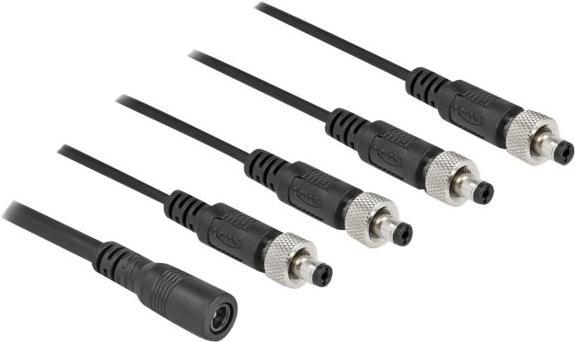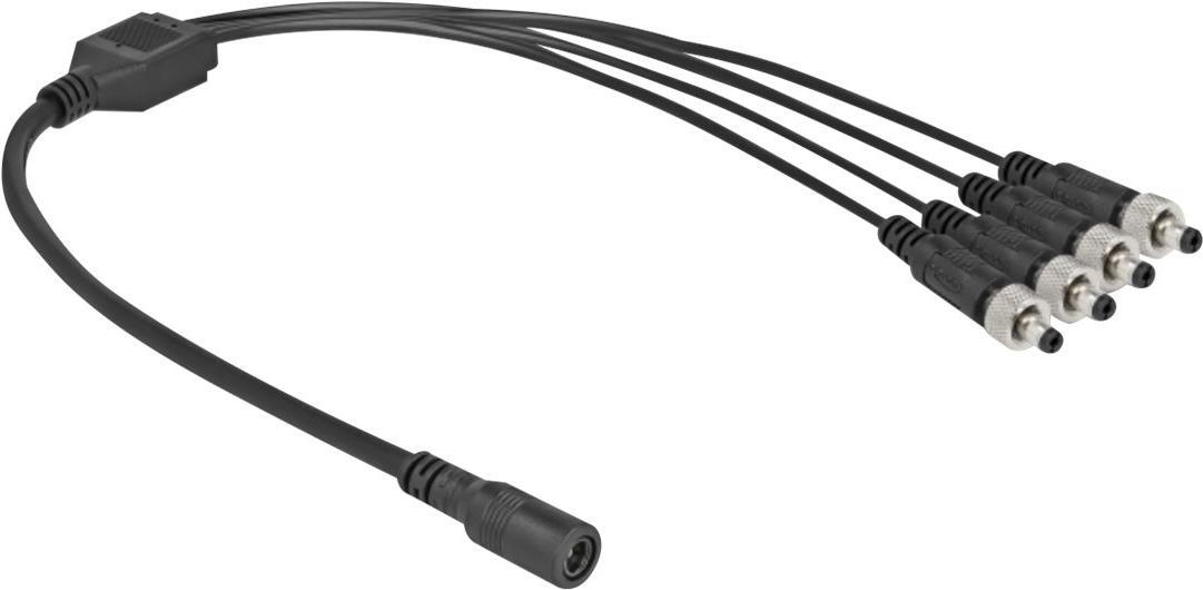 Dieses Verteilerkabel von Delock dient zum Anschluss von vier Geräten, welche Kleinspannung benötigen, wie z. B. Kameras oder LED-Streifen an ein Netzteil mit DC Anschluss. Der Schraubanschluss an den Steckern sorgt für eine feste Verbindung mit den passenden DC Buchsen.