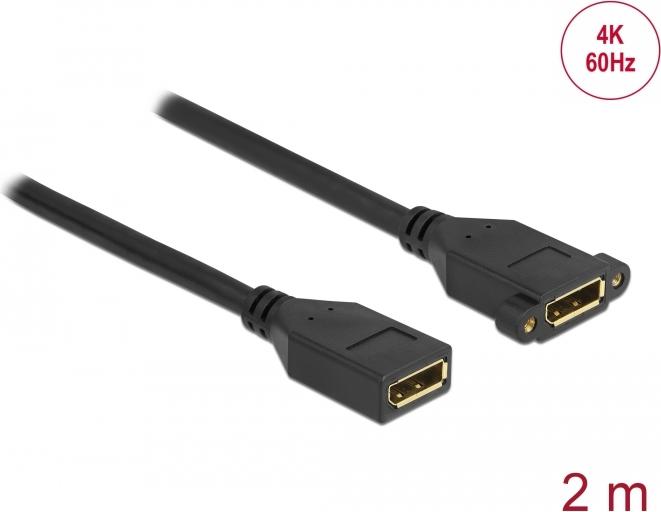 Delock - DisplayPort-Kabel - DisplayPort (W) bis DisplayPort (W) Paneel montierbar - DisplayPort 1,2 - 2,0m - unterstützt 4K 60 Hz (3840 x 2160) - Schwarz (87101)