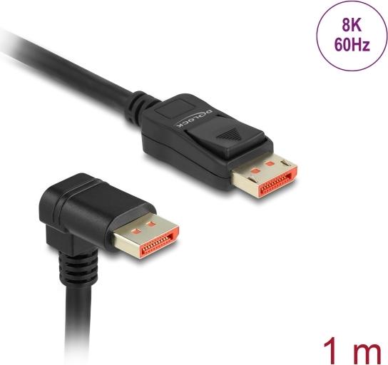 Delock - DisplayPort-Kabel - DisplayPort (M) gerade bis DisplayPort (M) nach unten abgewinkelt - DisplayPort 1,4 - 1,0m - unterstützt 8K 60 Hz (7680 x 4320) - Schwarz (87050)