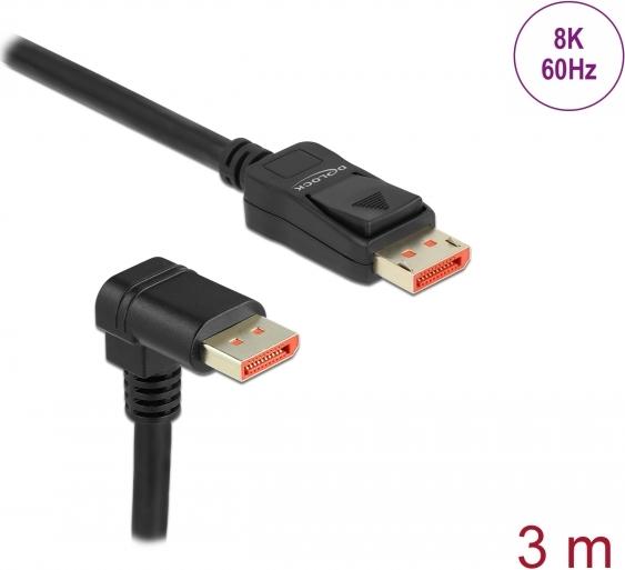 Delock - DisplayPort-Kabel - DisplayPort (M) gewinkelt bis DisplayPort (M) Verriegelung - DisplayPort 1,4 - 3,0m - unterstützt 8K 60 Hz (7680 x 4320) - Schwarz (87052)