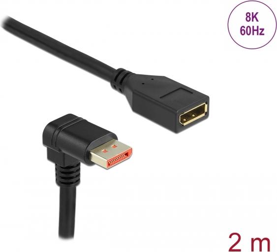 Delock - DisplayPort-Verlängerungskabel - DisplayPort (M) nach unten abgewinkelt bis DisplayPort (W) - DisplayPort 1,4 - 2,0m - unterstützt 8K 60 Hz (7680 x 4320) - Schwarz (87091)