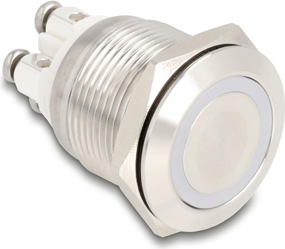 Delock Drucktaster zum Einbau 19 mm 4 x Schraubklemme LED weiß (20977)