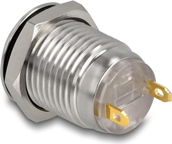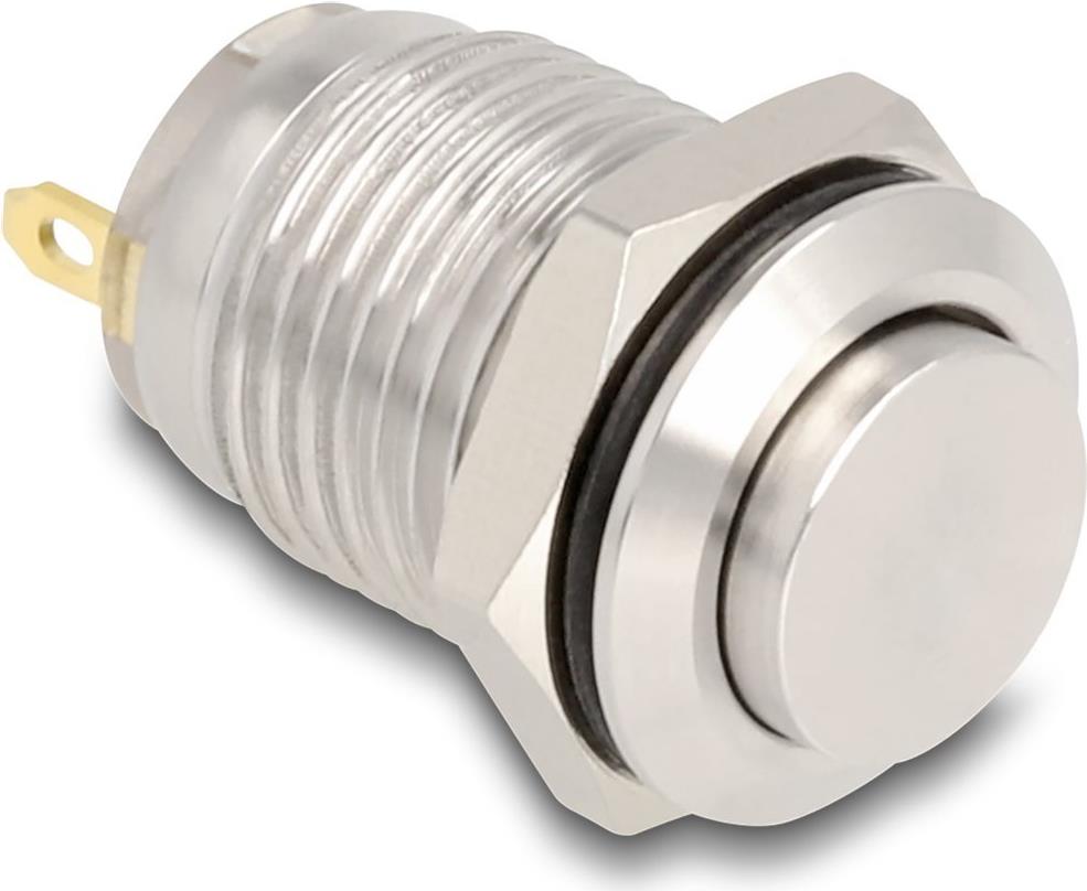 Delock - 1NO Drücktaster - für 12 mm Installation, 2 x Lötanschluss - an Schalttafel montierbar - Wechselstrom 230 V - Silber (20983)