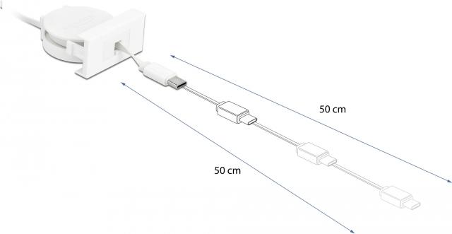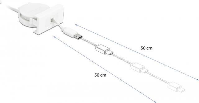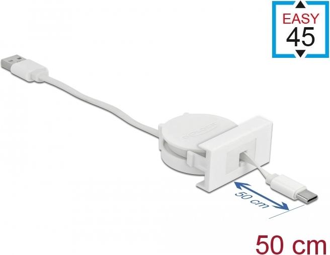 DeLOCK Easy 45 - USB-Kabel - USB (M) bis USB-C (M) - USB 2.0 - 5 V - 2 A - 50 cm - einziehbar, flach - weiß, RAL 9003