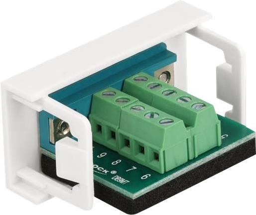Dieses Easy 45 Modul von Delock stellt einen D-Sub Stecker zur Verfügung. Durch den einfachen Einrastmechanismus sitzt das Modul fest an seinem Platz und lässt sich bei Bedarf problemlos entfernen.