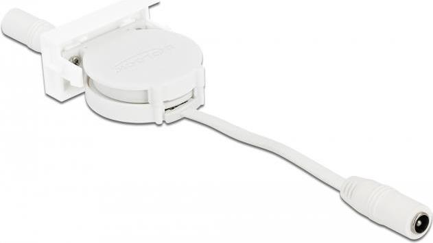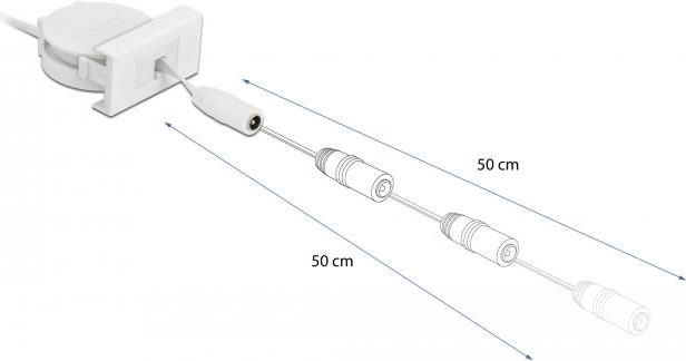 Delock Easy 45 - Stromkabel - Gleichstromstecker 5,5 x 2,1 mm (W) bis Gleichstromstecker 5,5 x 2,1 mm (W) - 12 V - 1.5 A - 50 cm - einziehbar, flach - weiß, RAL 9003 (81376)