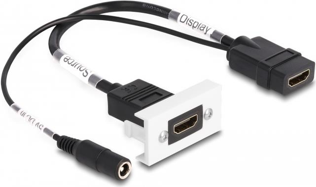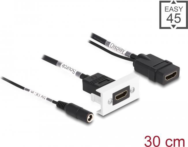 Delock - Easy 45 - Einrastmodul - mit DC-Einspeisung 2,1 x 5,5 mm und Pigtail, 22,5 x 45 mm - HDMI - 1 Audio-/Videoanschluss - Schwarz, weiß (81384)