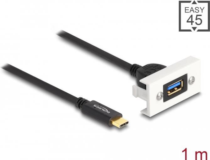 Delock Easy 45 Modul SuperSpeed USB 10 Gbps (USB 3.2 Gen 2) USB Typ-A Buchse zu USB Type-C™ Stecker mit Kabelpeitsche, 22,5 x 45 mm (81388)