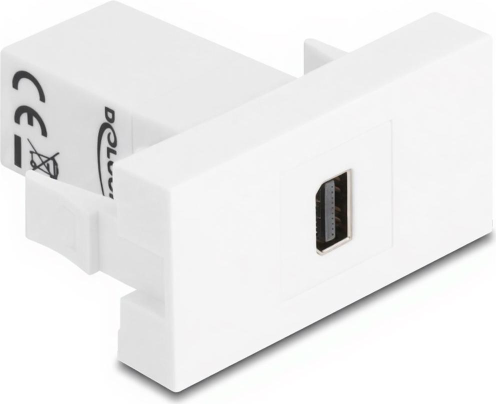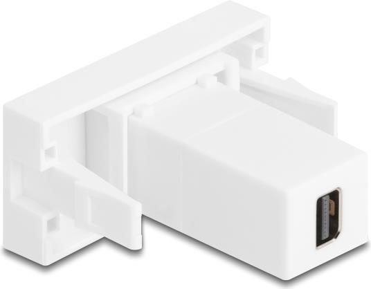 Die Delock Easy 45-Serie bietet ein Einrastmodul zur Integration von Anschlüssen in bestehende Setups. Dieses Modul verfügt über einen Mini DisplayPort-Ausgangsanschluss und einen Eingangsanschluss und gewährleistet so die Kompatibilität mit verschiedenen Geräten, die Mini DisplayPort-Anschlüsse verwenden. Die Clip-in-Befestigungsmethode ermöglicht eine sichere Installation und ist somit die ideale Wahl zur Erweiterung der Anschlussmöglichkeiten.