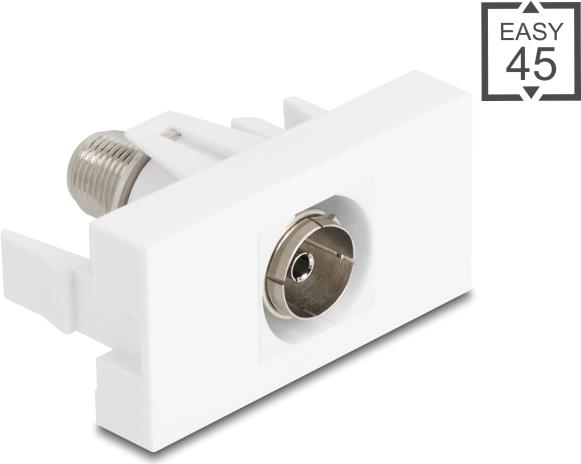 Das Delock Easy 45 Snap-In-Modul bietet eine praktische Lösung für verschiedene Anschlussanforderungen. Mit einer IEC-Buchse als Ausgang und F-Buchsen als Eingang ist dieses Modul auf Benutzerfreundlichkeit und Zuverlässigkeit ausgelegt. Die Clip-In-Befestigung vereinfacht die Installation und macht es zur idealen Wahl für effiziente Setups. Dieses Produkt entspricht den Normen IEC 60169-2 und gewährleistet, dass Anwender eine Lösung erhalten, die alle wesentlichen Anforderungen erfüllt.