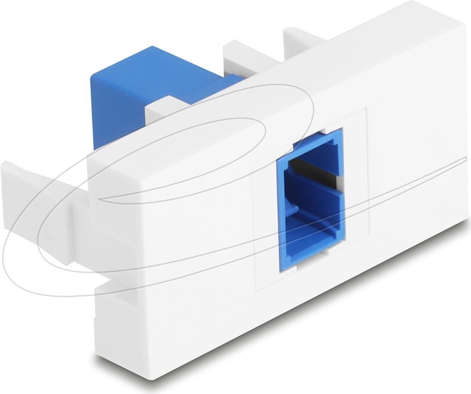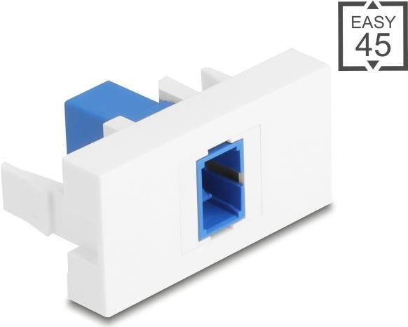 Das Delock Easy 45 Snap-In-Modul ist für die nahtlose Integration von Glasfaseranschlüssen konzipiert. Dieses rechteckige Modul verfügt über einen SC-Singlemode-Ausgangsanschluss, der eine effiziente und zuverlässige Verbindung gewährleistet. Dank der Clip-In-Befestigung lässt es sich einfach installieren und entfernen und ist somit eine praktische Wahl für verschiedene Anwendungen. Der staubgeschützte Anschluss sorgt für optimale Leistung in unterschiedlichen Umgebungen.