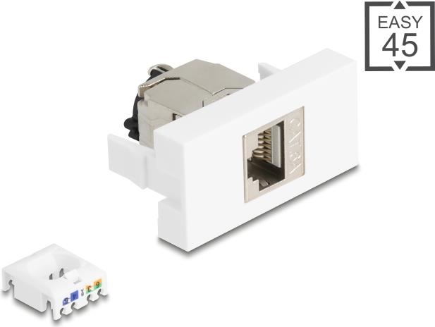 Das Delock Easy 45 Snap-In-Modul bietet Netzwerkfunktionen mit seiner CAT 6a STP-Technologie. Dieses rechteckige Modul wurde für die Installation entwickelt und passt in verschiedene Setups. Es verfügt über eine Clip-In-Befestigungsmethode, die den Montagevorgang vereinfacht. Der RJ-45-Ausgangsanschluss gewährleistet eine zuverlässige Verbindung, während die LSA-Eingangsanschlüsse eine Vielzahl von Verdrahtungsschemata unterstützen und somit vielseitig für unterschiedliche Anwendungen einsetzbar sind. Da keine Kabelbinder erforderlich sind und das Modul über eine zuverlässige Verriegelungsklammer verfügt, ist es eine effiziente Lösung zur Verbesserung von Netzwerkkonfigurationen.