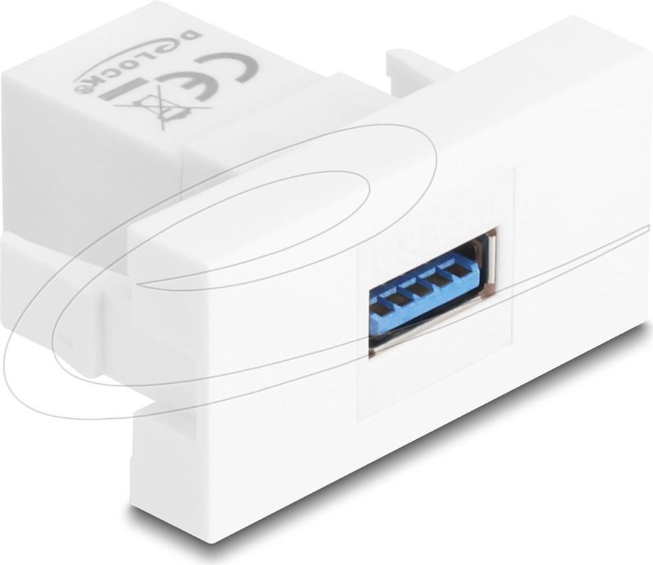 Das Delock Easy 45 Snap-In-Modul bietet eine Lösung für jeden Arbeitsbereich, der einen USB-Ausgangsanschluss benötigt. Dieses Modul mit rechteckiger Form ist für die Installation mit einer Clip-In-Befestigung konzipiert und eignet sich daher für verschiedene Umgebungen. Das Modul unterstützt Datenübertragungsgeschwindigkeiten von bis zu 5 Gbit/s und gewährleistet so eine schnelle und zuverlässige Verbindung für Ihre Geräte.