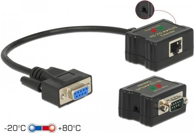| Produktbeschreibung | DeLOCK Extender RS-232 DB9 female RJ45 female to RS-232 DB9 male RJ45 female - erweiterter Temperaturbereich - serielle Anschlusserweiterung - RS-232 |