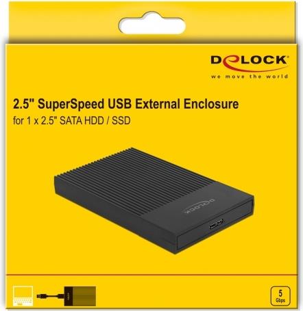 Delock - Speichergehäuse - 2.5" (6,4 cm) - SATA 6Gb/s - USB 3,2 (Gen 1) - Schwarz (42011)