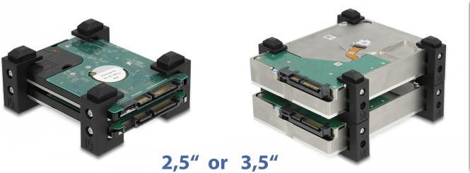 Delock - Hard drive holder - Kapazität: 2 x 3.5" HDD or 4 x 2.5" HDD/SSD - Schwarz (Packung mit 8) (18027)