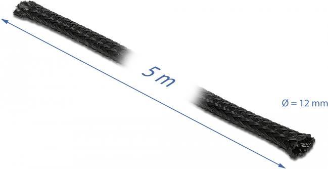 DeLOCK Braided Sleeving - Expandierbare geflochtene Ummantelung - 5,0m - Schwarz (18849)
