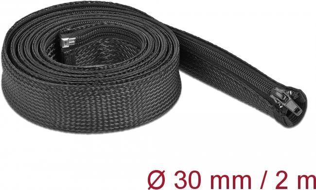 DeLOCK Braided Sleeve with zip fastener heat-resistant - Geflechtschlauch - 2,0m - Schwarz (19168)