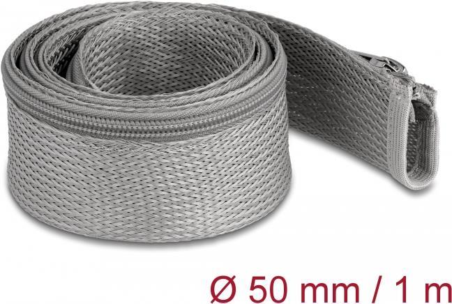 Delock Geflechtschlauch mit Reißverschluss hitzebeständig 1 m x 50 mm grau (20826)