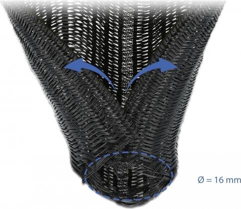 Dieser Geflechtschlauch von Delock eignet sich zum Bündeln von freiliegenden Kabeln, elektrischen Leitungen oder Drähten, um diese vor Verschmutzungen oder Beschädigungen zu schützen.