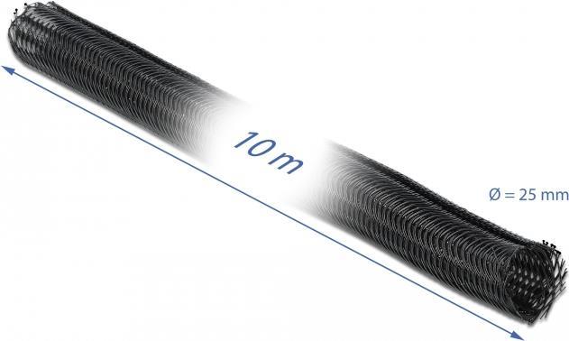 Delock Braided Sleeving self-closing - Geflechtschlauch - 10,0m - Schwarz (19047)