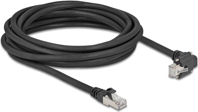 Delock GigE Kamera Kabel RJ45 Stecker 90° gewinkelt mit Schrauben zu RJ45 Stecker Cat.6 S/FTP 5 m schwarz (80924)