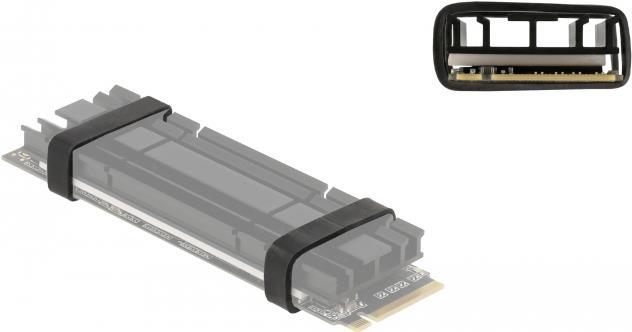 Dieser Gummiring von Delock kann verwendet werden, um einen Kühlkörper und Wärmeleitpad an einer M.2 SSD zu befestigen. Das Gummiband sorgt somit für einen festen Halt des Kühlkörpers, selbst wenn dieser nach unten gerichtet ist.
