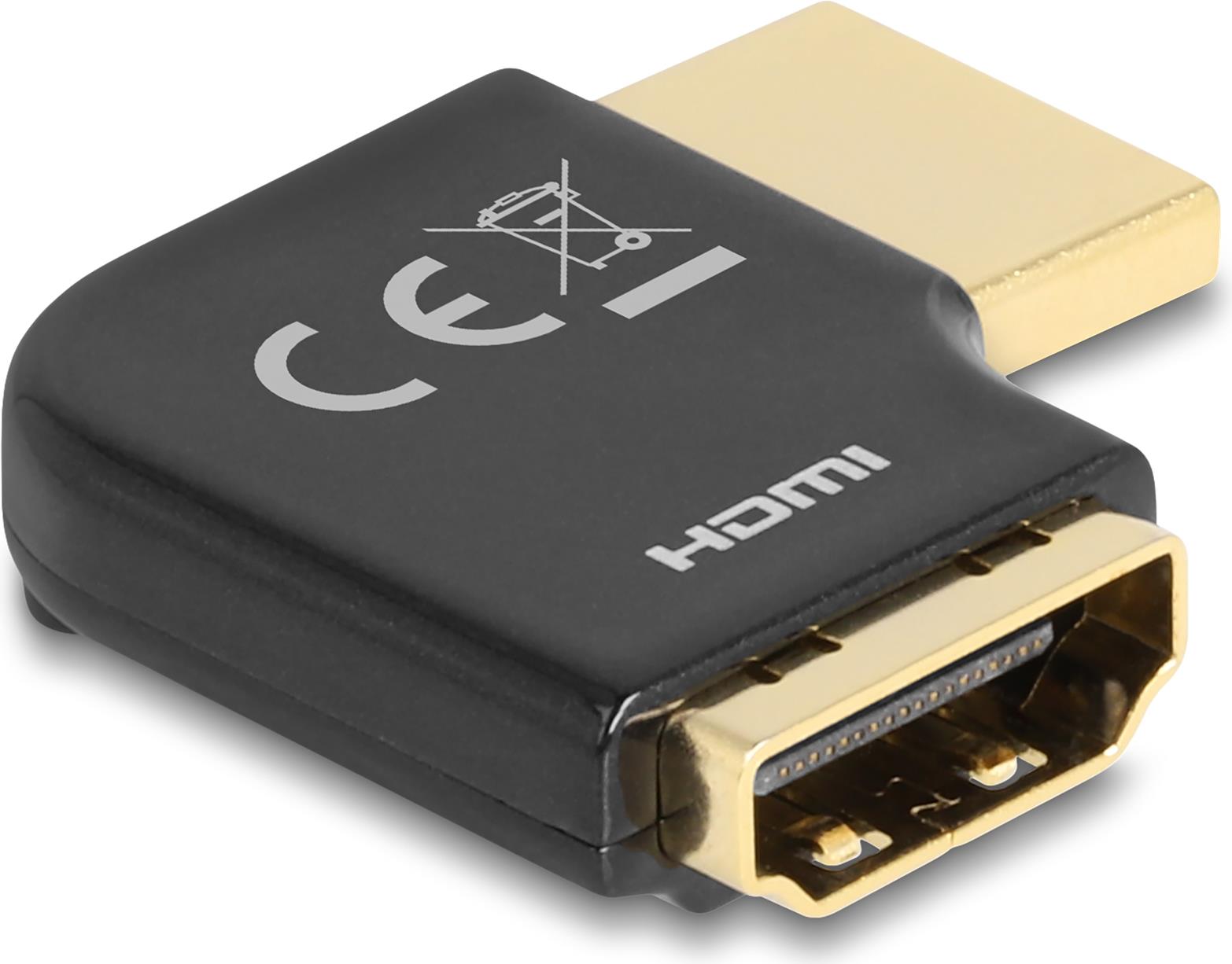 Delock HDMI Adapter Stecker zu Buchse 90° links gewinkelt 8K 60 Hz Metall (60018)