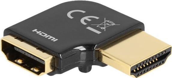 Mit diesem HDMI-Adapter von Delock kann der Anschluss eines HDMI-Gerätes, z.B. eines Flachbildschirms, um 90° abgewinkelt werden. So lässt sich ein HDMI-Kabel einfach anschließen, wenn die vorhandene HDMI-Buchse schwer zugänglich ist.