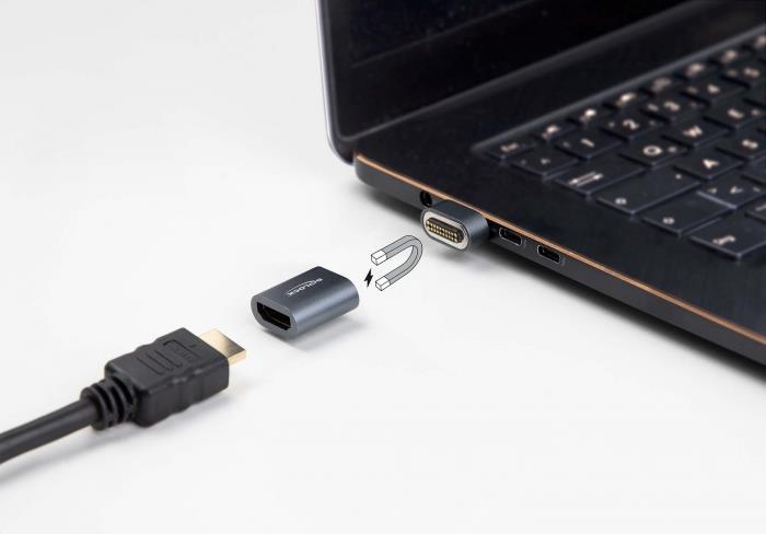 Dieser magnetische Adapter von Delock kann beim Anschluss von HDMI Geräten verwendet werden. Ebenso lässt sich der Adapter als Portschoner einsetzen, um die Schnittstelle bei Anwendungen mit hohen Steckzyklen zu schützen. Der Adapter ist so konzipiert, dass er in der Buchse des Gerätes verbleiben kann und den Verschleiß an der Buchse verhindert sowie als Staubschutz dient.