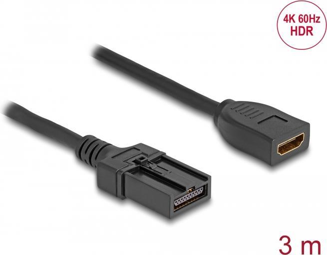 Delock - High Speed - HDMI-Kabel - HDMI weiblich zu HDMI Typ E (Automotive) männlich Verriegelung - 3 m - Doppelisolierung - Schwarz - unterstützt 4K 60 Hz (3840 x 2160)