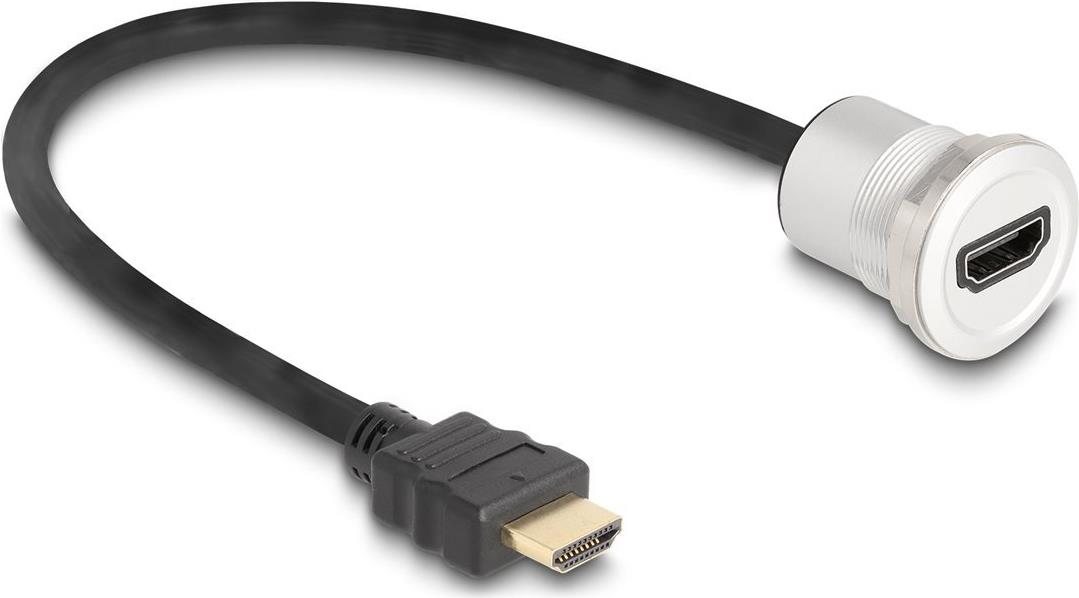 Delock - HDMI-Verlängerungskabel - HDMI männlich zu HDMI weiblich Paneel montierbar - 30cm - Schwarz, Silber - M25 Gewinde, unterstützt 8K 60 Hz (7680 x 4320) (88180)