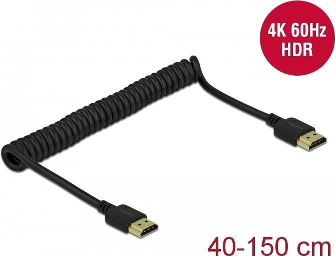 DeLOCK - Highspeed HDMI mit Ethernetkabel - HDMI (M) bis HDMI (M) - 1,5m - Dreifachisolierung - Schwarz - gewickelt, 4K Unterstützung (84967)