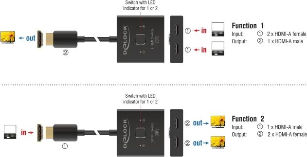 Das Kabel wurde für Komfort entwickelt und verfügt über einen Schalter zum einfachen Umschalten zwischen den Eingängen sowie eine LED-Statusanzeige. Das robuste Kunststoffgehäuse und die bidirektionale Fähigkeit sorgen für Zuverlässigkeit bei verschiedenen Anwendungen und machen es zur ersten Wahl für Desktop-Setups. Dieses Delock HDMI-Kabel wurde mit HDR-Unterstützung verbessert und gewährleistet eine satte, lebendige Bildqualität, die sich für Gaming, Streaming und den professionellen Einsatz eignet.