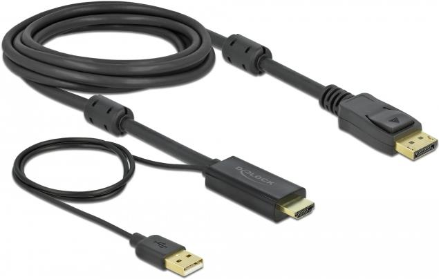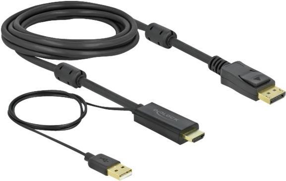 DeLOCK HDMI zu DisplayPort Kabel 4K 30 Hz 3 m - 3 m - HDMI Typ A (Standard) - DisplayPort + USB Type-A - Männlich - Männlich - Gerade (85965)