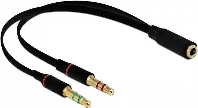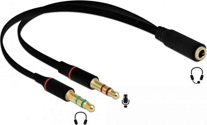 DeLOCK - Headsetadapter - 4-poliger Mini-Stecker (W) bis Stereo Mini-Klinkenstecker (M) - 20 cm - Schwarz