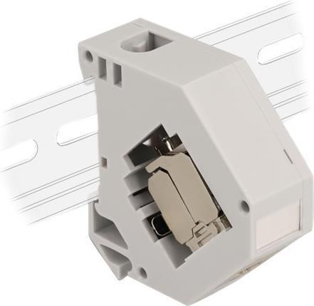 Dieser Adapter von Delock enthält ein passendes Keystone Modul mit einer RJ45 Buchse, das zum Anschluss eines Netzwerkkabels verwendet werden kann. Gleichzeitig kann der Adapter an einer 35 mm breiten Hutschiene befestigt werden, um eine Installation z. B. in einem Schaltschrank zu ermöglichen. Zudem besitzt der Adapter ein kleines Beschriftungsfeld, welches individuell beschriftet oder mit verschiedenen Symbolen versehen werden kann.
