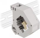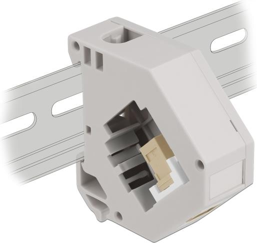 Der Adapter kann an einer 35 mm breiten Hutschiene befestigt werden. Zudem besitzt der Adapter auch ein kleines Beschriftungsfeld, welches individuell beschriftet oder mit verschiedenen Symbolen versehen werden kann.