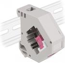 Der Adapter kann an einer 35 mm breiten Hutschiene befestigt werden. Zudem besitzt der Adapter auch ein kleines Beschriftungsfeld, welches individuell beschriftet oder mit verschiedenen Symbolen versehen werden kann.